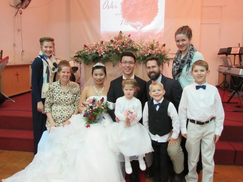 Jesus really helped us by finding the perfect blue bow tie which perfectly matched the groomsmens' bow ties. Thankfully Elijah already had the rest of his dressy clothes with him, and U. Charlie and A. Yoli got him his nice shoes for his recent birthday.~