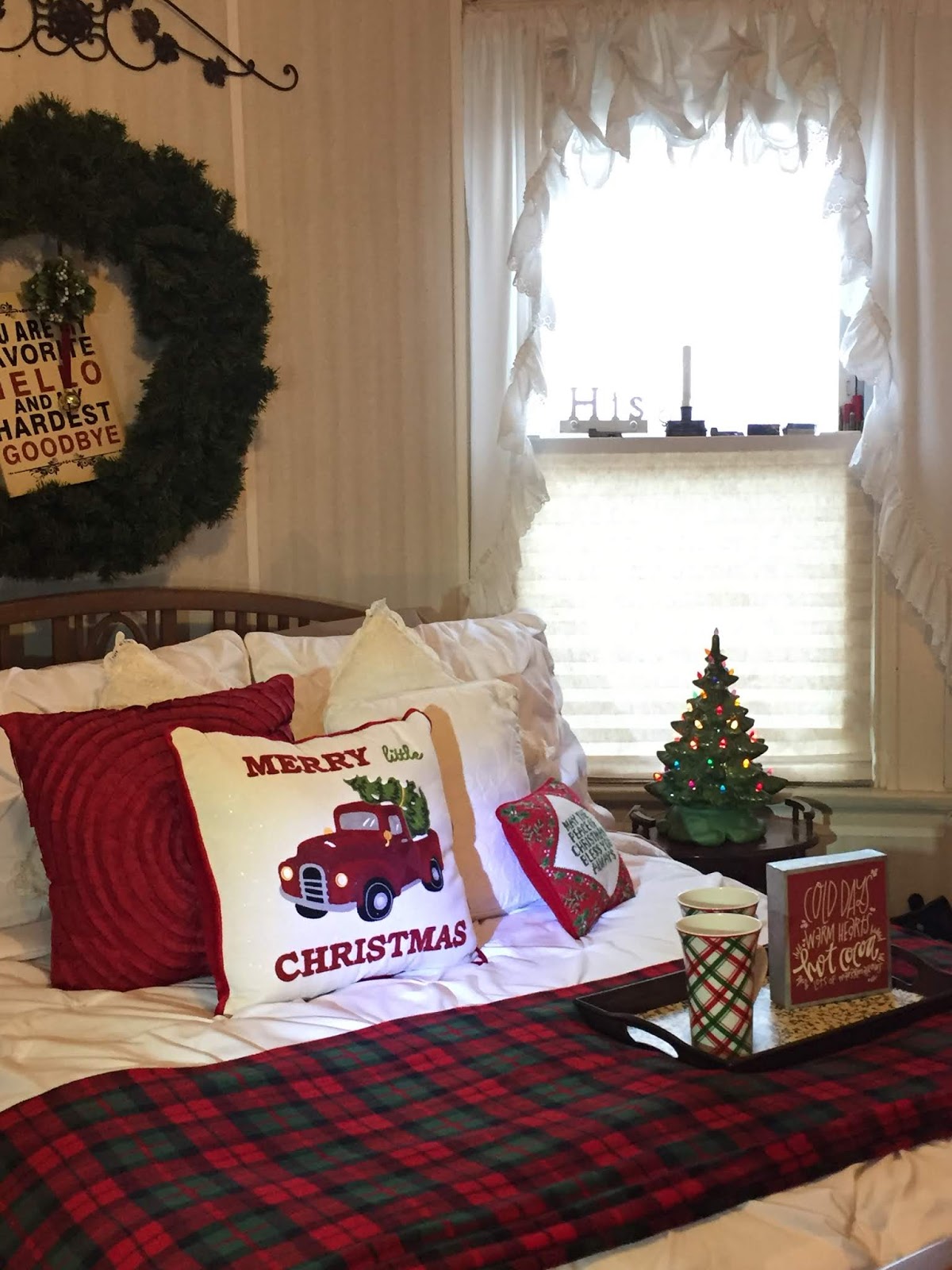 ~Inside the wreath above our bed, I placed mistletoe and a sign that says,